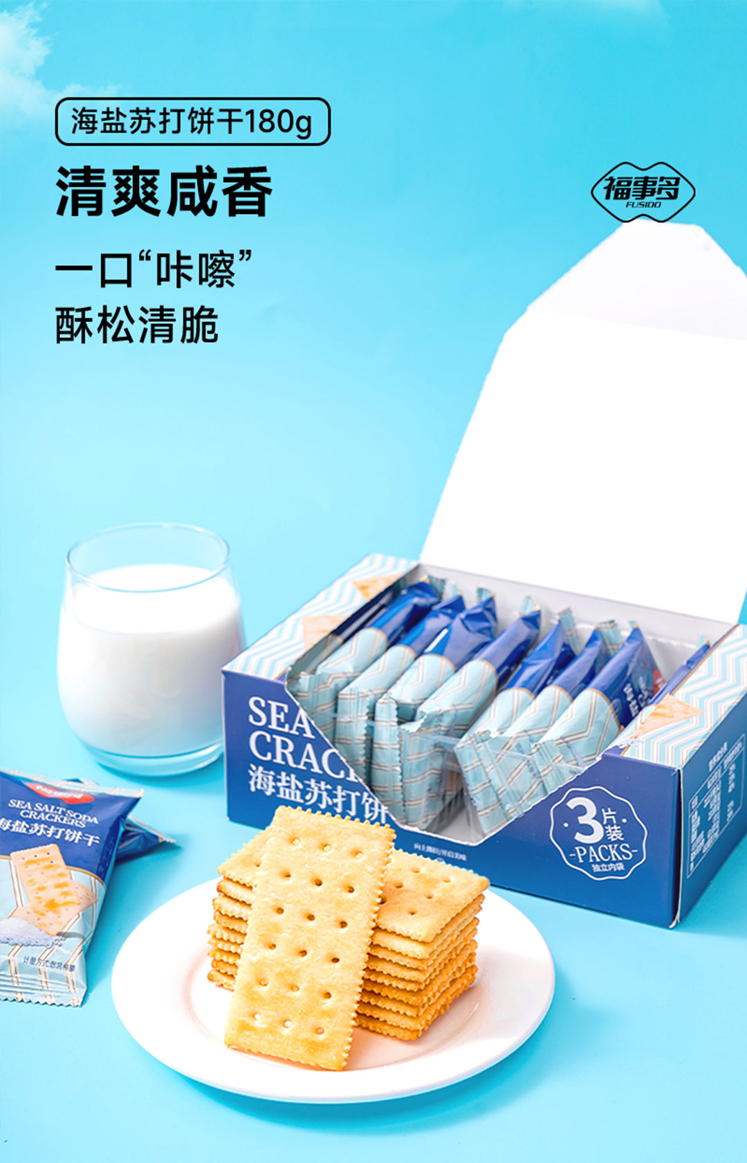 福事多海盐苏打饼干180g 2盒 原味