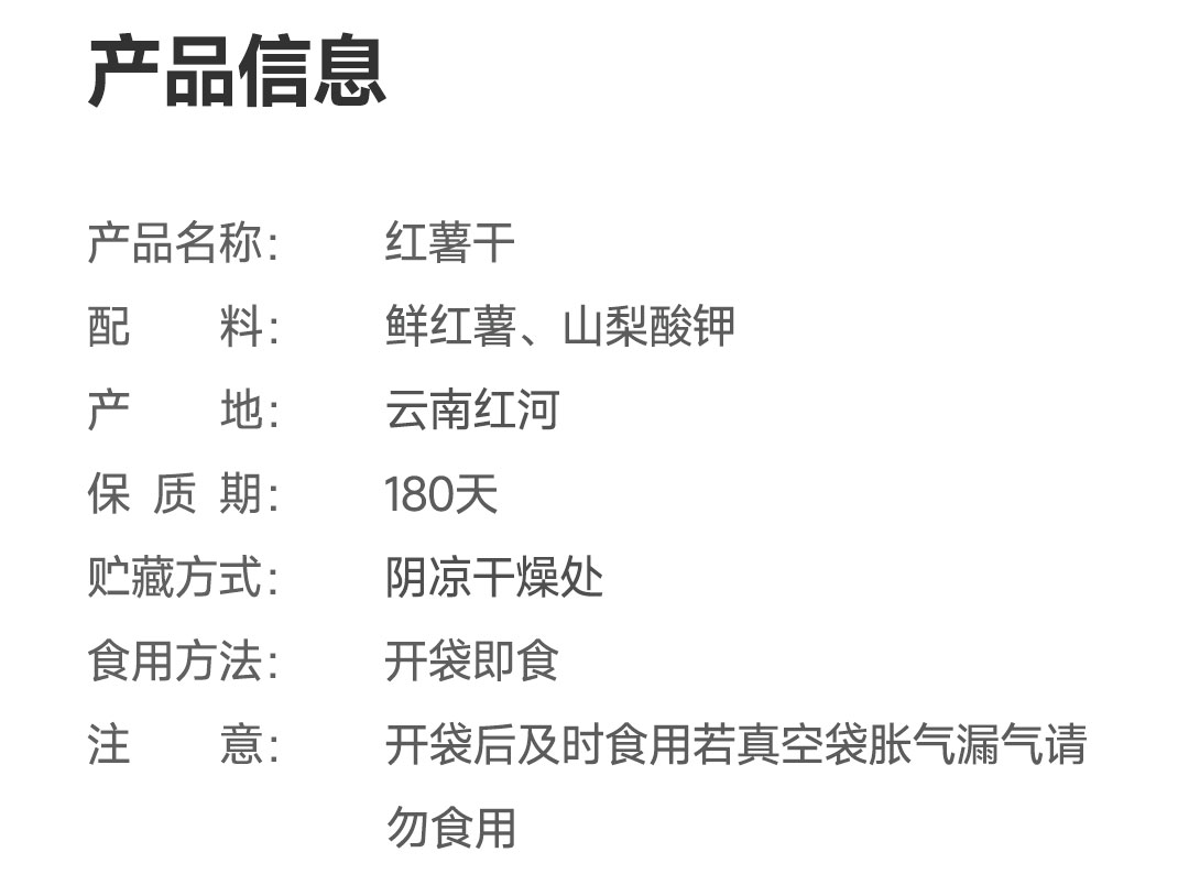 云南高原红薯干 不加糖自然甜 180g/袋 :1袋