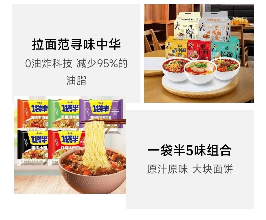 今麦郎方便面速食拉面范寻味中华一袋半方便面多口味混合 拉面范系列5包组合