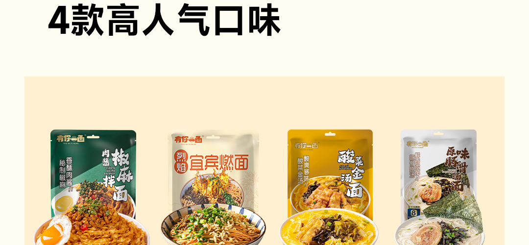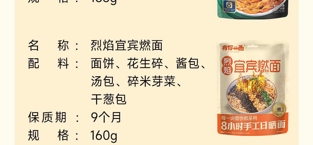 有你一面 非油炸日晒面宜宾燃面酸菜金汤面拌面方便速食自煮 3包 宜宾燃面